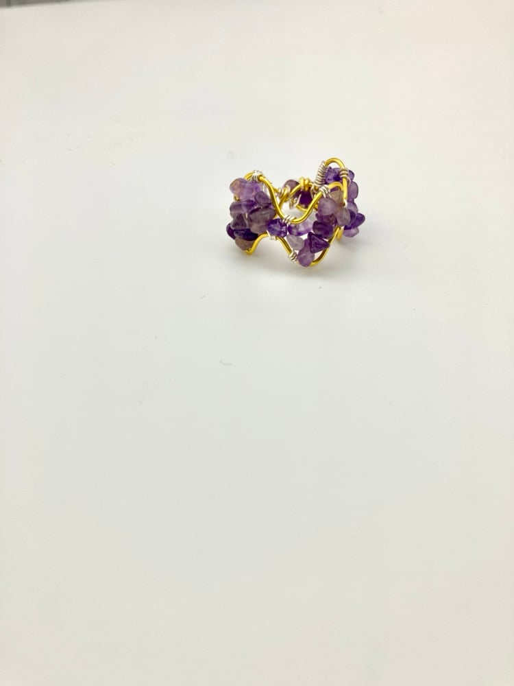 Embrace the spirit of the Age of Aquarius with this exquisite, handmade amethyst crystal wire ring. Delicately crafted with genuine amethyst beads and a touch of shimmering gold accent, this piece embodies the essence of boho luxe style. The artful wire wrapping, reminiscent of flowing waves, beautifully cradles the stones, symbolizing transformation and a connection to new energies. Wear it as a wearable talisman, a touch of everyday magic that supports your journey.
