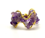 Amethyst Crystal Beaded Ring, Gold Accent, Handmade Jewelry