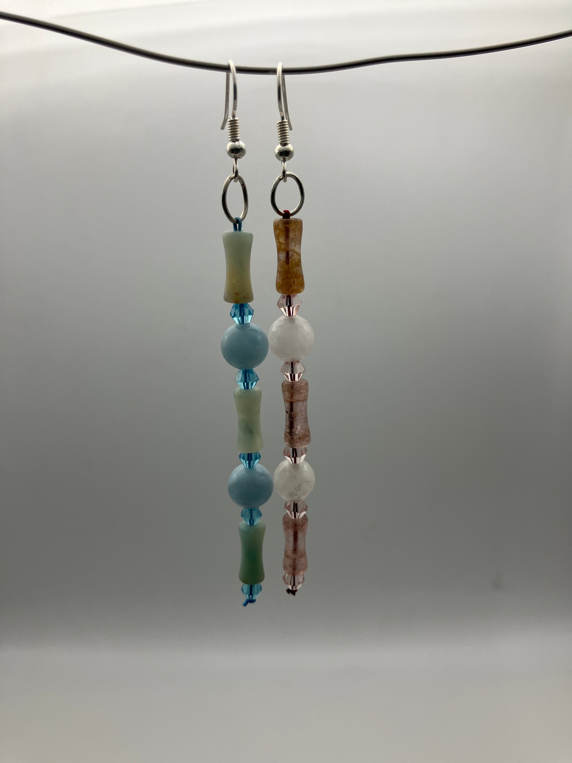 Bamboo Healing Crystal Dangling Earrings | 95mm •