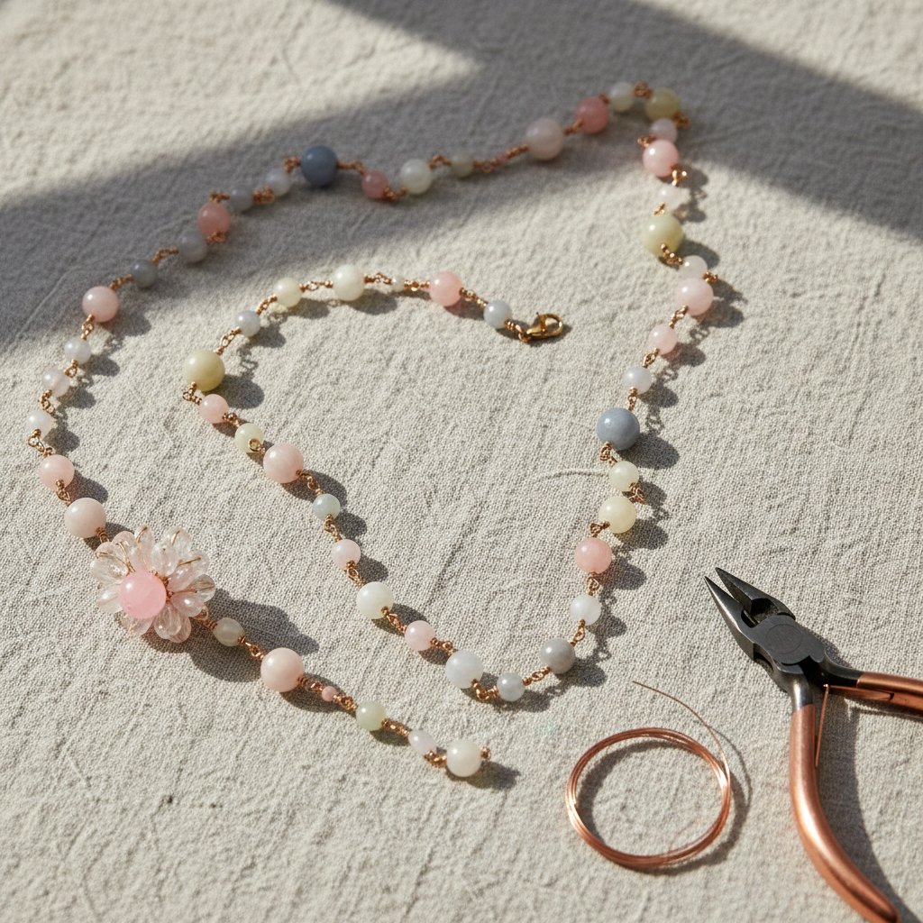 Material Hand wrapped KC copper wire and Morganite beads (4mm - 12mm)