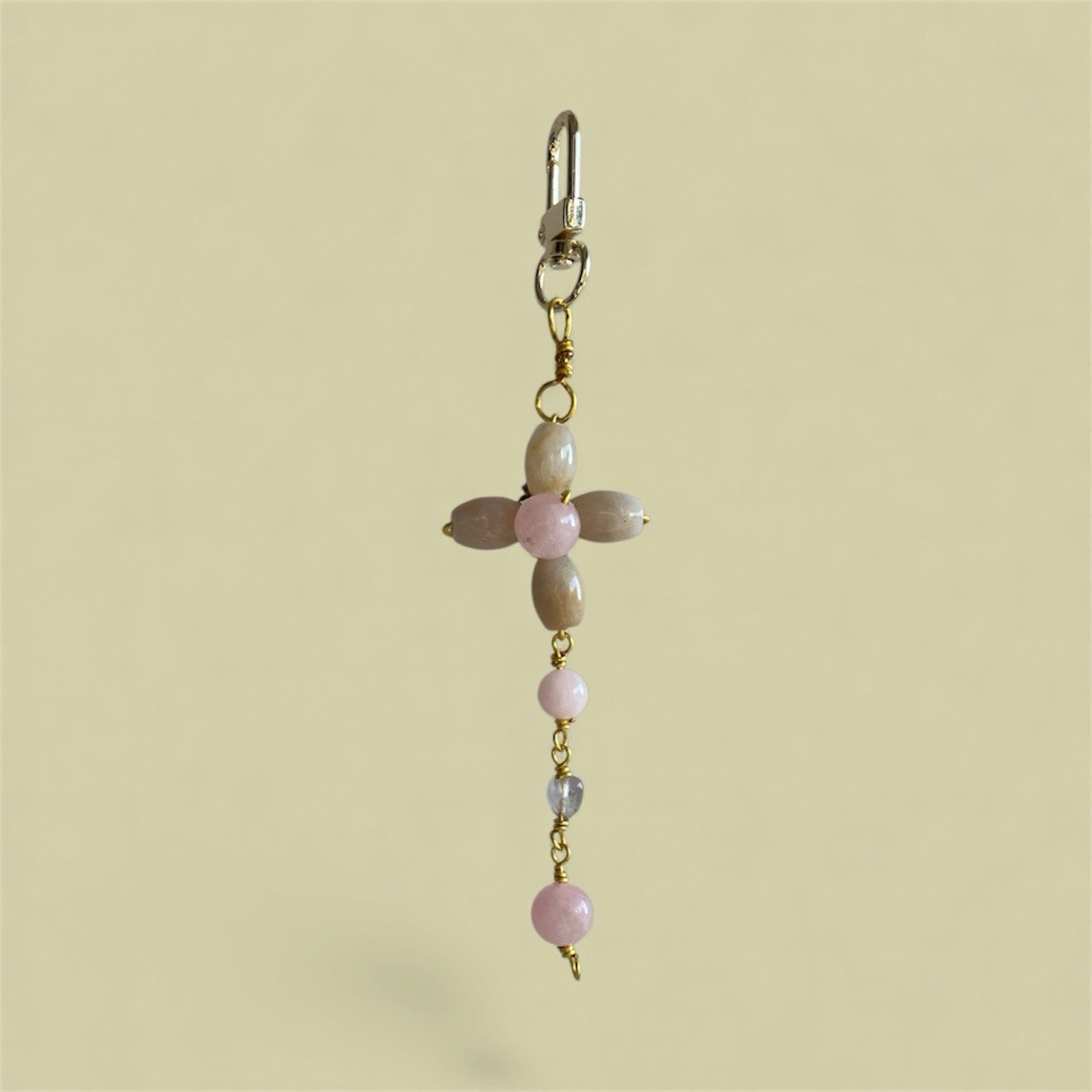 Milky Tea Jade Charm: Jade & Morganite Keychain | 18k Gold Plated Clasp