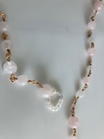 PINK Y necklace - Translucent Pale Rose Quartz Lariat Necklace - 76cm | • Self Love
