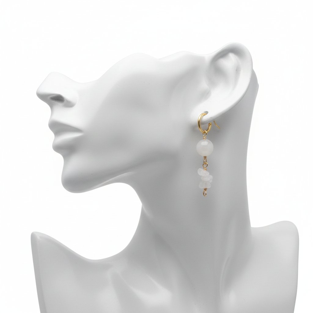 Details: Combines the calming energy of white jade with the ethereal shimmer of moonstone. Features 8 beads, 55x10mm pendant size, 8g weight.