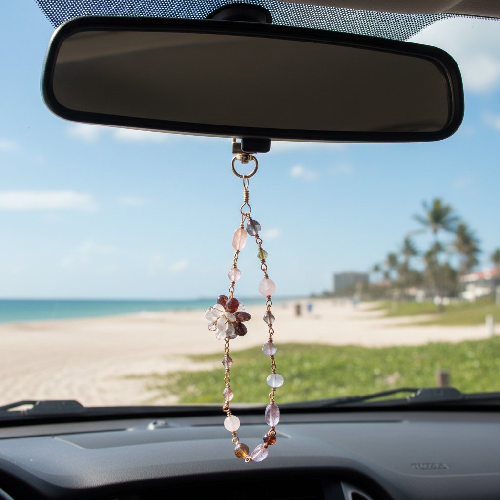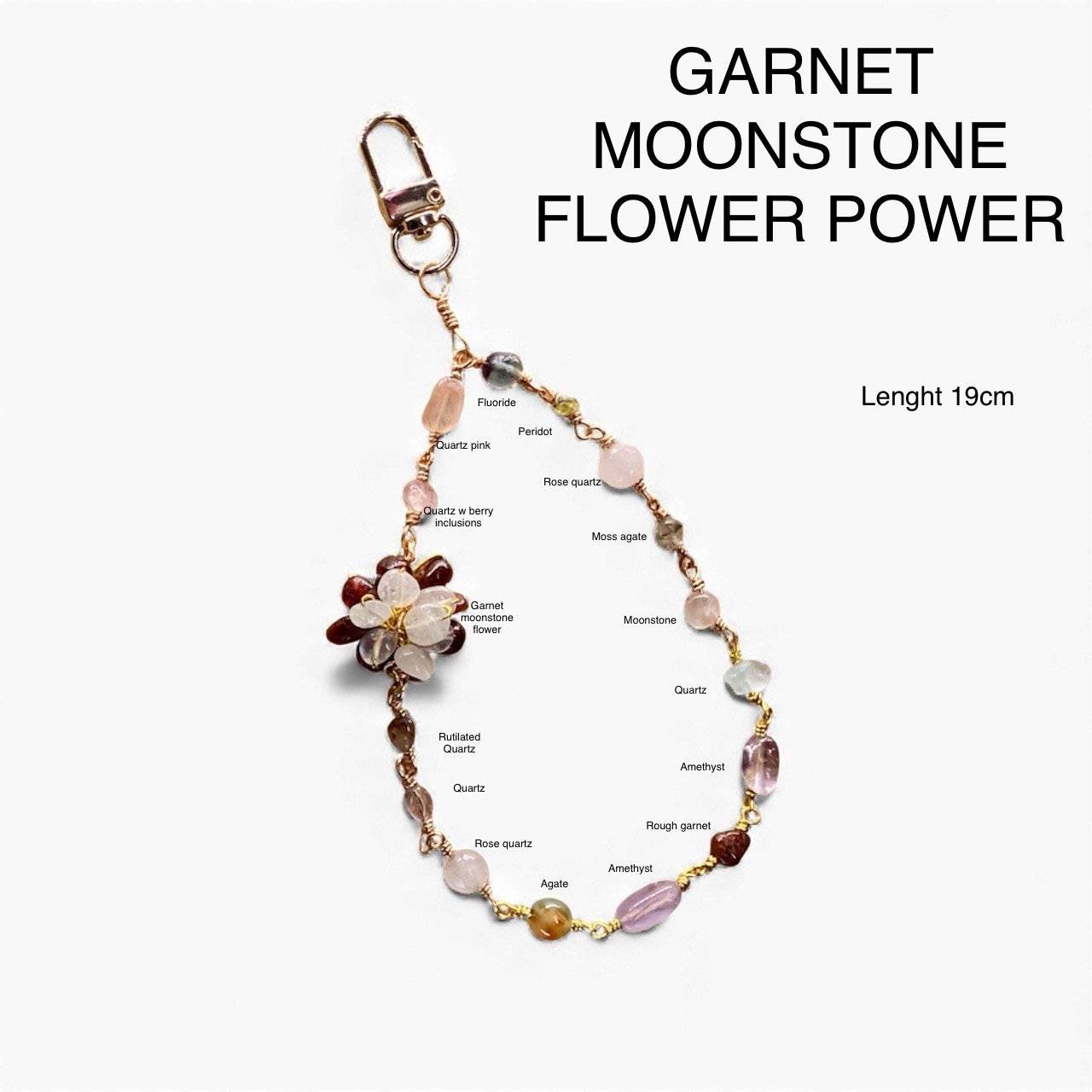 Icy Fire Lanyard Charm: Multi-Gemstone Crystal | 19cm Rose Quartz, Moonstone, Garnet